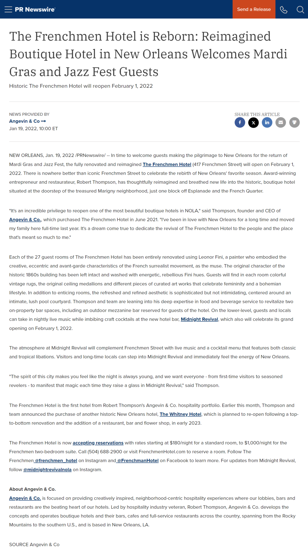 Hotel Press Release Examples